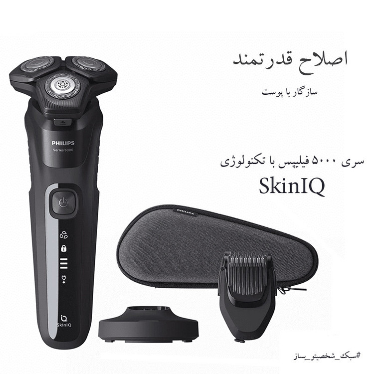 فیلیپس در طراحی ریش تراش های جدید خود از تکنولوژی SkinIQ بهره برده است . این تکنولوژی این قابلیت را داراست که متناسب با نوع پوست و ضخامت ریش هر شخص دور موتور را تنظیم کند تا کاربر بهترین و منطبق ترین اصلاح با پوست را تجربه کند . S5588/38 از تولیدات جدید شرکت فیلیپس و از سری 5000 این کمپانی خوش نام می باشد که کاملا ضد آب بوده و قابلیت اصلاح بصورت خشک یا مرطوب را به شما می دهد . باتری لیتیوم یون قدرتمند این دستگاه در مدت 60 دقیقه شارژ می شود و پس از شارژ کامل به مدت 50 دقیقه (معادل 17 اصلاح) بصورت مداوم اصلاح میکند . 45 تیغه بکار رفته در این ریش تراش در سه سری مختلف قرار گرفته و با بهترین کیفیت روز دنیا ساخته شده و با 90000 دور چرخش در دقیقه هیچ مویی از صورت شانس جا ماندن روی صورت شما پیدا نمی کند . همچنین این تیغه ها از جنس استیل ضد زنگ و خودتیز شونده می باشند که یک مزیت بسیار عالی نسبت به مدلهای قدیمی سری 5000 می باشد . خط زن این دستگاه هم بر خلاف مدلهای قدیمی 5000 در قسمت پشت آن واقع شده و استفاده از آن را ساده تر از پیش کرده است .یکی از قابلیت های بسیار خوب و کاربردی S5588/38 سری تریمر این مدل می باشد که قابلیت اصلاح ته ریش را به کاربر می دهد بنابراین شما قادر خواهید بود علاوه بر اصلاح صفر ، اصلاح ته ریش را نیز با این مدل تجربه کنید . بهمراه دستگاه استند شارژ و یک کیف مسافرتی بسیار شیک و با کیفیت نیز ارائه شده است . S5588/38 طراحی و ساخته شده در کشور هلند می باشد .