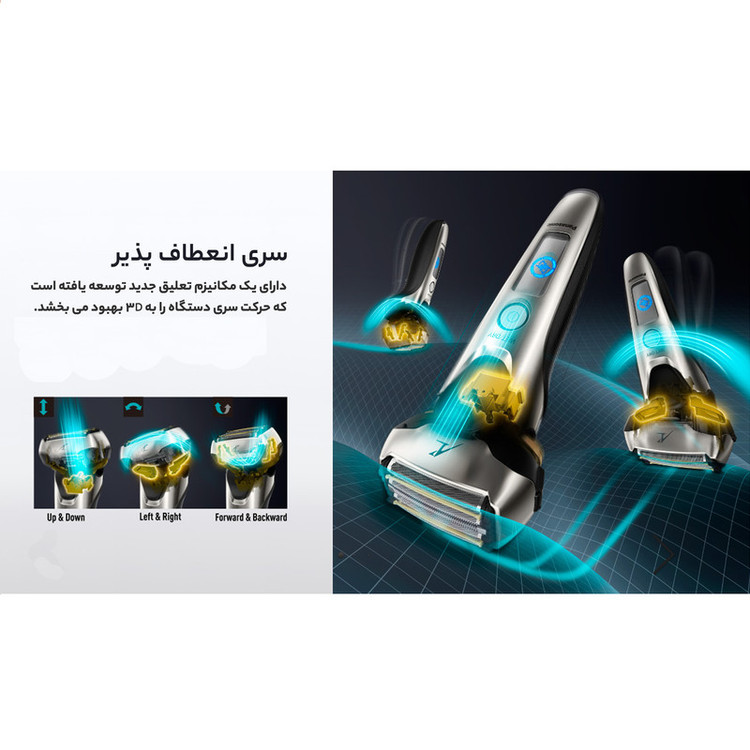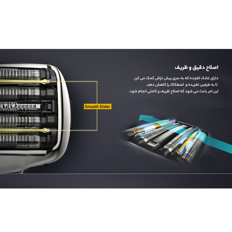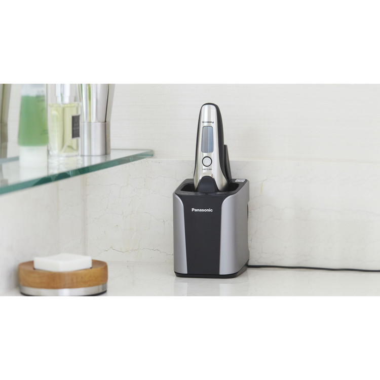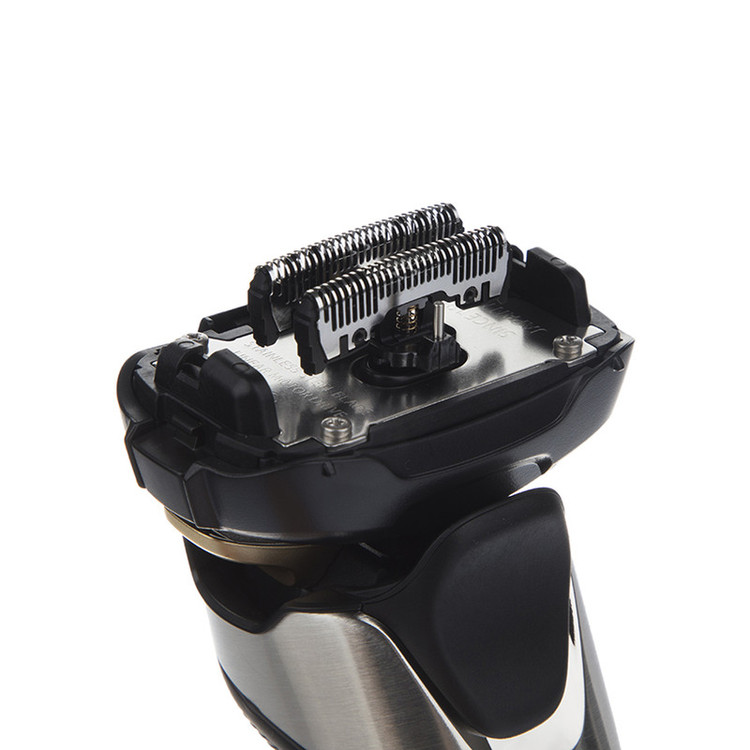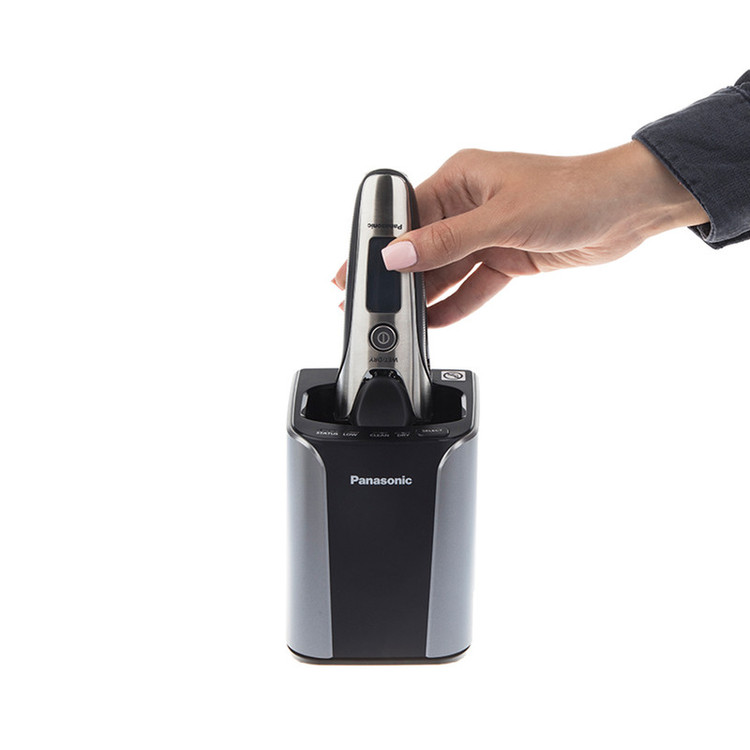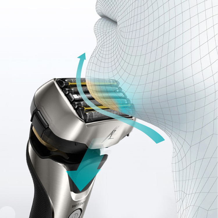 ماشین اصلاح صورت پاناسونیک مدل لمدش ES-LV9N-S یک ریشتراش پنجتیغه و ضدآب است، که با پایهی تمیزکنندهی اتوماتیک همراه است. این مدل جزو سری ARC شرکت Panasonic است و تیغههای منحصربهفردی دارد. تیغهها دارای لبهی با زاویهی بهینهی 30 درجه هستند و موها را از نزدیکترین نقطهی ممکن به پوست قطع میکنند. همچنین، تیغهها توسط فناوری نانو پولیش شدهاند تا دقت و تیزی بیشتری داشته باشند و برندگی خود را برای طولانی ترین مدت حفظ کنند. روی تیغهها پنج پوشش استیل ضدزنگ قرار دارد که هر کدام طراحی مخصوص به خود را دارند. چهار تیغه از نوع فویلی هستند و با طراحی ششضلعی و لبههای با زاویهی خاص، تمام موها را به طور کامل برداشته و سپس با تیغههای زیری آنها را قطع میکنند. دو پوشش روی تیغه ها به رنگ طلایی این امکان را فراهم می کنند تا دستگاه به راحتی روی پوست حرکت کرده و التهاب پس از اصلاح را کاهش دهند. بدلیل موتور قدرتمند این دستگاه که با سرعت 14000 دور در دقیقه نوسان میکند، قطع کردن موها در کسری از ثانیه انجام میشود و در مدت زمان کوتاهی میتوان صورتی صاف و بدون تهریش داشت. این موتور با توجه به ضخامت موها، قدرت را به شکل اتوماتیک تنظیم میکند تا نقاط حساس مثل گونه با قدرت کمتری و موهای ضخیم مانند موهای چانه با قدرت بیشتری اصلاح شوند. به همین دلیل بعد از اصلاح، یکنواختی در همهی قسمتهای صورت مشهود است. سر ماشین اصلاح به شکل شناور است و امکان حرکت سهبعدی را دارد، به این معنی که علاوه بر چپ و راست و جلو و عقب رفتن، میتواند در محور خود بالا و پایین نیز حرکت کند. این ویژگی به خصوص برای اصلاح نقاط انحنادار صورت مانند چانه و گردن، منجر به این میشود که برای اصلاح این نقاط نیازی به فشار زیاد سر ریشتراش با پوست نباشد. همچنین برای اصلاح و مرتبکردن نقاطی مانند خطریش و سبیل، میتوان از خطزن متصل به دستگاه استفاده کرد که در پشت آن قرار دارد. علاوه بر این، میتوان ماشین اصلاح صورت پاناسونیک مدل لمدش ES-LV9N-S را در حمام با استفاده از فوم و ژل اصلاح و حتی زیر آب گرم استفاده کرد و اصلاحی نرمتر و راحتتر داشت. جنس پشت دستگاه از لاستیک ضد لغزش ساخته شده است تا زمانی که بدنه آن مرطوب است، از دست لیز نخورد.