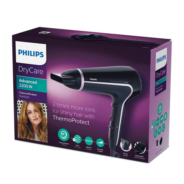 تنظیم دما ThermoProtect دمای خشک شدن مطلوب را فراهم می کند و محافظت بیشتری در برابر گرم شدن بیش از حد موها می کند. با همان جریان هوای قوی ، در عین مهربانی با موهای خود ، بهترین نتایج را خواهید گرفت.