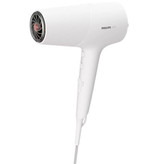سشوار مدل BHD500 فیلیپس یک سشوار بسیار پرقدرت و حرفه ای بوده که با استفاده از یک موتور قدرتمند 2100 وات از نوع DC توانایی ایجاد جریان باد گرم و سرد را دارد. این جریان هوای عالی علاوه بر اینکه موجب می شود تا موها 20% سریع تر از حالت عادی خشک شوند، به حالت گیری بهتر آن ها نیز کمک می کند.سشوار BHD500 دارای 6 حالت تنظیم دما و سرعت می باشد. بنابراین شما می توانید به راحتی تنظیمات دستگاه خود را شخصی سازی نمایید و با توجه به جنس و حجم موها و همچنین مدل موی مد نظرتان ، بهترین حالت را انتخاب کنید.این سشوار مجهز به تکنولوژی ThermoShield بوده تا از موهای شما در برابر آسیب محافظت کند. در این تکنولوژی دمای بالا توسط یک سنسور حرارتی تشخیص داده شده و بدین شکل از گرم شدن بیش از اندازه سشوار و آسیب دیدن موها جلوگیری می شود. سشوار BHD500 فیلیپس مجهز به تکنولوژی تولید یون است. در این فناوری با تولید یون های منفی ، الکتریسیته ساکن ایجاد شده بر روی موها از بین رفته و علاوه بر جلوگیری از وز شدگی به درخشندگی بیشتر موها نیز کمک می شود. با هر بار استفاده از این سشوار به راحتی تا 40 میلیون یون منتشر شده تا براقیت و زیبایی هر چه بیشتر موها تضمین گردد. این مدل مجهز به یک سری متمرکز کننده هوا با عرض دهانه 14 میلی متر نیز هست و به همین جهت این امکان را دارد تا باد را با فشار بیشتری به بیرون پرتاب نماید. این ویژگی به حالت دهی بهتر و سریع تر موها کمک زیادی خواهد کرد.
