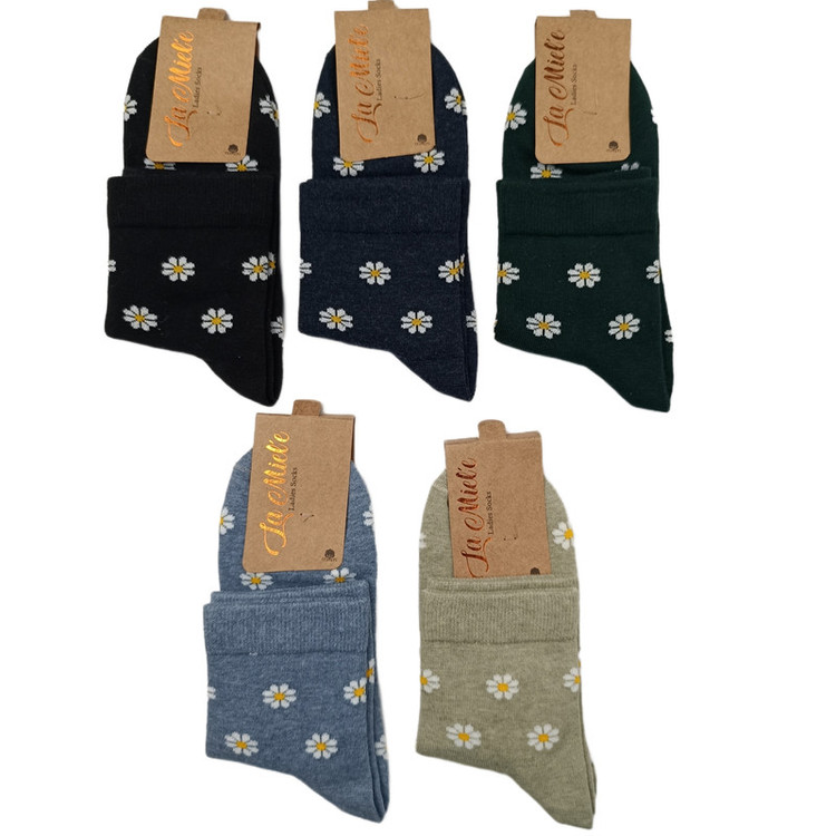 جوراب ساق بلند زنانه مدل بابونه مجموعه پنج عددی