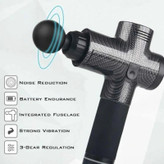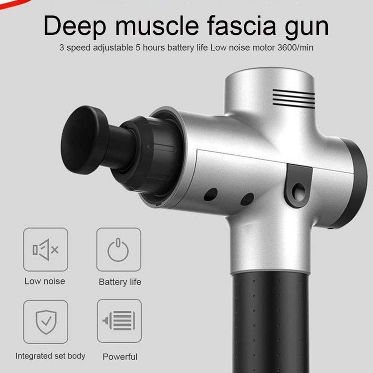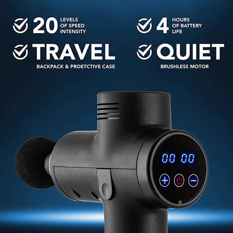 این ماساژور بی سیم و سبک با بدنه یکپارچه Integrated Fuselage، دارای 20 سرعت قابل تنظیم برای تغییر دلخواه دامنه و سرعت ضربات بازوی ماساژ، مجهز به نمایشگر لمسی LED دیجیتال برای روشن / خاموش و تنظیم سرعت است.همچنین یک کیف مخصوص برزنتی و مستحکم همیشه از آن محافظت می کند. شما می توانید برای ماساژ بدن متناسب با محل ماساژ از 4 هد ماساژ (سری ماساژ) با امکان تعویض آسان به دلخواه استفاده نمایید. از کاربردهای این ماساژور شارژی قدرتمند؛ رهایی سریع از خستگی های عضلانی یا رفع گرفتگی رگ های عصبی است که قطعا ماساژهای آرامش بخش و موثر را تجربه خواهید کرد. استفاده اصولی از این تفنگ ماساژ باعث کاهش درد و آسیب های استخوانی میگردد، به رفع درد و سفتی عضلات کمک می کند و دامنه حرکت را بهبود و همچنین گردش خون را ارتقا می بخشد تا باعث تسریع در گرم شدن و بهبودی عضلات گردد. بعلاوه برای ورزشکاران باعث کاهش درد عضلانی بعد از تمرین های سخت و فشرده ورزشی، یا افزایش راندمان ریکاوری عضلانی خواهد شد. باتری قوی تری در این نسل جدید نسبت به دستگاه های مشابه بکار رفته است. لازم به توضیح است سری توپی گرد که مناسب برای تمام عضلات پهن بدن است، البته سر گلوله ای برای قسمت های مفصلی مانند مفاصل پا ، بافت های عمیق و نواحی عضله مناسب است. سری U شکل که عمدتا برای ستون فقرات ، گردن و شانه برای عضلات حساس یا بافتهای نرم استفاده می شود. سری صاف و گرد برای آرامش کل عضلات بدن مانند پشت و پا مناسب است، و سری باریک نیز عموما برای مفاصل بدن مانند زانو یا مچ پا و شکاف بین عضلات مانند ران پا بسیار مفید است.