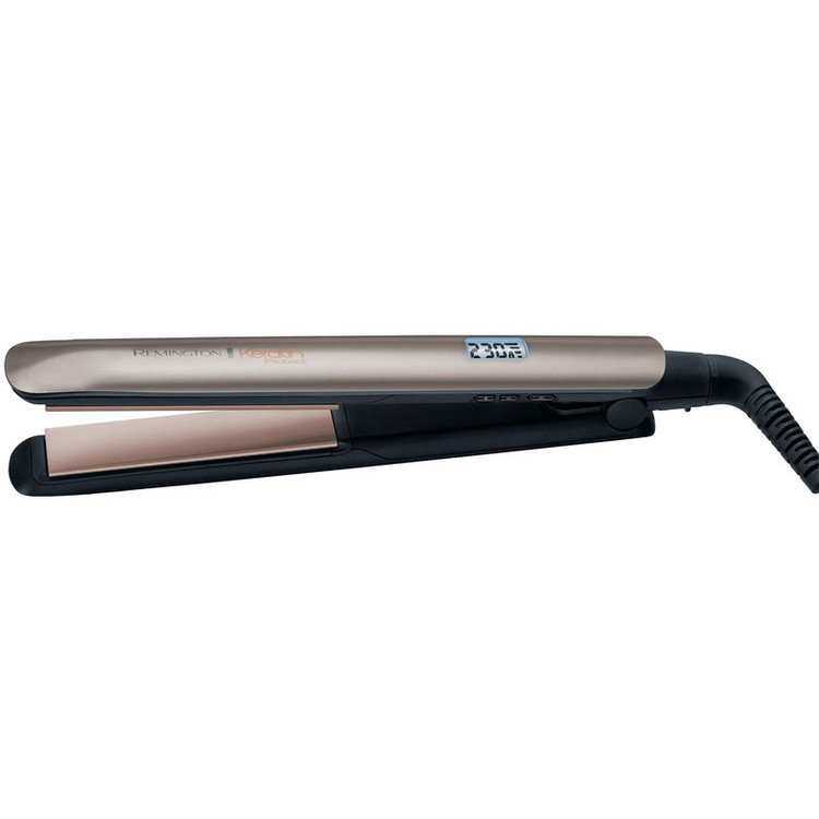 تنها اتو مو مخصوص کار کراتین از شرکت «رمینگتون» مدل «S8540» است. تفاوت این اتو با سایر اتوها این است که برای این اتو مو، صفحاتی از جنس سرامیک با روکش کراتین پلاس و روغن بادام در نظر گرفته شده است که صافی بهتر و بادوام تر با آسیب کمتر را به ارمغان می آورد. همچنین این اتو بهترین گزینه برای کار با مواد کراتین در مصارف حرفه ای است. صفحههای سرامیک کراتین برای سلامتی مو مناسبتر هستند؛ چون سرامیک عایق الکتریسیته و مقاوم دربرابر گرماست؛ بنابراین میزان انتقال الکتریسیته به مو و ایجاد خطر به هنگام استفاده از اتو مو کاهش مییابد. کفههای سرامیکی به دلیل مقاومت دربرابر حرارت، دیرتر فرسوده میشوند و بر همین اساس، عمر بالاتری دارند. همچنین حرارتی که زیر کفههای سرامیکی ایجاد میشود، بهخوبی در سطح سرامیک پخش شده و آن را داغ میکند. همین عامل باعث میشود حرارت به طور یکسان در حین اتوکشیدن به تمام موها منتقل شود. سیستم خاموشی خودکار موجب خاموششدن اتو مو پس از 60 دقیقه میشود که همین عامل، مصرف انرژی را کاهش داده و به ایمنی دستگاه میافزاید. از دیگر ویژگیهای S8540 میتوان به قابلیت تنظیم دما با نمایشگر دیجیتال اشاره کرد. با استفاده از این سیستم میتوان دماهای مختلفی را برای صافکردن موهای خشک، مرطوب، حالتدار و فر همچنین کار با مواد کراتین در نظر گرفت. سیم گردان نیز استفاده از آن را آسان میکند. S8540 اتو مویی مناسب برای استفادهکنندگان حرفهای از جمله آرایشگران است.