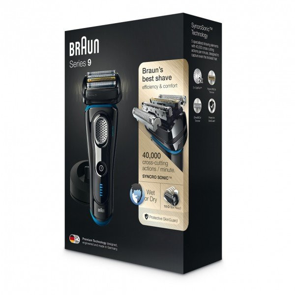 ریش تراش در دنیای امروز یک وسیله مهم برای اقایانی است که پیوسته صورت خود را عاری از هرگونه موی نگه میدارند.از این رو هرچه ریش تراش کارآمدتر باشد سرعت و دقت و کیفیت اصلاح بالاتر خواهد بود.ریش تراش سری 9 براون کارآمدترین ریش تراش دنیاست که تونایی برداشتن همه مو ها را از صورت داراست.این ریش تراش دارای بدنه مشکی رنگ بوده و تیغه آن از جنس تیتانیوم میباشد.همچنین یک عدد هایپر لیفت به آن اضافه گردیده تا توانایی اصلاح آن را تکمیل کند.ریش تراش سری 9 براون مدل 9240 را از این حیث یک ریش تراش فوق العاده با توانایی بسیار بالا میباشد.این دستگاه ساخت کشور آلمان بوده و و کیفیت بی نظیر آن مثال زدنی است.اقلام اضافی مانند کیف پارچه ای و برس پاک کننده و همچنین یک عدد استند شارژ در پک آن قرار دارد.