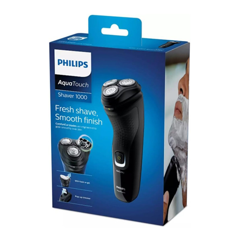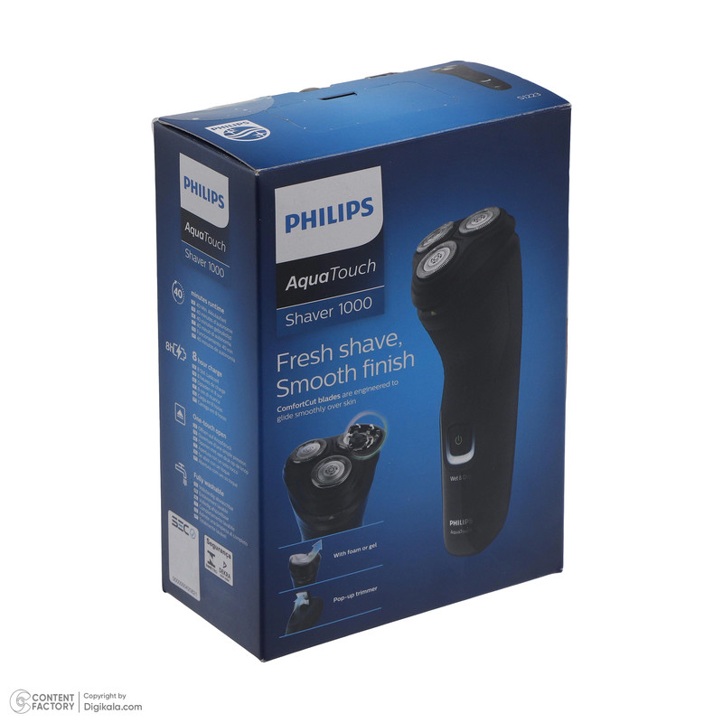 ماشین اصلاح فیلیپس S1223/41 با سه بعدی بودن تیغه های شناورش، شما را قادر می سازد پوستی صاف و بدون مو داشته باشید، هر روز و در هر مراسم رسمی و غیررسمی. این تیغه ها به راحتی روی پوست سر می خورند و موها را از ته می تراشند. ریش تراش چرخشی فیلیپس S1223/41 با 3 روکش محافظ به 27 تیغه محافظت می کند. این روکش ها جلو می گیرند که پوست و تیغه ها در حین اصلاح به هم برخورد کنند و در نتیجه پوست را محافظت می کنند. همچنین طراحی تیغه ها به راحتی روی پوست سر می خورند و اصلاحی سریع و دقیق را فراهم می کنند.این ریش تراش از طراحی ارگونومیک بهره می برد که به خوبی در دست جای می گیرد و اصلاحی راحت را تجربه کنید. همچنین وزن سبک دستگاه باعث می شود دست تان حین اصلاح حس درد و خستگی نکند.ریش تراش Philips S1223/41 دارای سری برش چرخشی است که به راحتی موهای صورت را دقیق، سریع و به طور کامل از ته کوتاه می کند. همچنین با برش چرخشی می تواند موهای خوابیده ناحیه گردن را هم به خوبی بتراشد.تیغه های دستگاه از جنس استیل ضد زنگ هستند و با فشار دادن یک دکمه می توانید سری ماشین اصلاح را باز کنید و زیر شیر آب بشویید. همچنین تیغه های خود تیز شونده دارای عمر طولانی تری نسبت به تیغه های معمولی هستند و تراشیدن مداوم و تمیز را تضمین می کنند.ریش تراش فیلیپس S1223/41 سازگاری خوبی با انحنای صورت و گردن دارد و تیغه های شناور سه بعدی به خوبی روی پوست سازگاز می شوند و بدون فشار زیاد موها را از ته قطع می کنند. همچنین این ریش تراش مناسب برای افرادی که پوست حساس دارند است زیرا دارای سیستم محافظت از پوست است و بریدگی و زخم را جلوگیری می کند.در آخر می توانید با استفاده از چراغ نشانگر شارژ، میزان شارژ باتری را کنترل کنید. همچنین در پشت دستگاه خط زنی تعبیه شده است که برای مرتب کردن سبیل، خط انداختن ریش، شقیقه ها و پشت گردن کاربرد دارد.ماشین اصلاح فیلیپس S1223/41 دارای باتری قابل شارژ است و بعد از 8 ساعت شارژ می توانید تا 40 دقیقه بدون سیم صورت را اصلاح کنید. همچنین این ریش تراش کاملا ضدآب است و می توانید آن را خشک یا مرطوب زیر دوش استفاده کنید. ولتاژ ورودی دستگاه نیز 100 تا 240 ولت است.