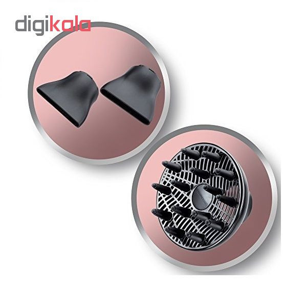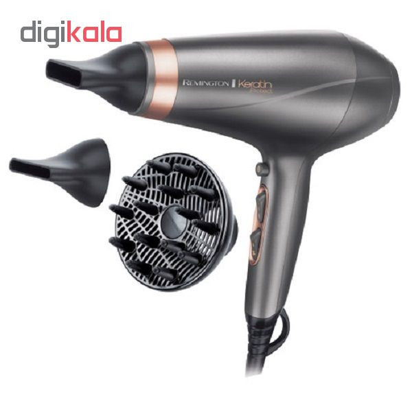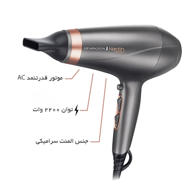 سشوار یکی از محبوبترین ابزارهای آراسته کردن موی سر است که افراد زیادی عادت به استفاده روزانه آن دارند. سشوار رمینگتون مدل AC8820 دستگاهی پرقدرت با توان کاکرد بالاست که به طور کلی برای استفادهی خانگی و نیمه حرفهای طراحی شده است. موتور دستگاه از نوع AC است و با حداکثر قدرت 2200 وات کار میکند. از مزایای بزرگ این سشوار میتوان به قابلیت تولید یون توسط آن اشاره کرد. این ویژگی باعث میشود میزان وزشدن موها به حداقل برسد. سشوار AC8820 قابلیت محافظت کراتین مو را در خود دارد. این سشوار دارای قابلیت ایجاد باد سرد را نیز دارد و طول کابل سشوار به 3 متر میرسد. علاوه بر این، میتوانید دمای هوای خروجی سشوار را در سه وضعیت و سرعت باد آن را دو حالت تنظیم کنید. دستگاه مدل AC8820 دارای یک سری دیفیوزر است که برای افراد دارای موهای فر بسیار کاربردی است. همچنین 2 سری که در بستهبندی این محصول وجود دارند هم برای دادن استایل به موی سر بسیار کاربردی هستند.