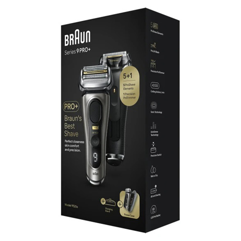 شیور براون مدل Braun Series 9 9525 یک ماشین اصلاح برقی پیشرفته و از سری 9 محصولات براون است که به دلیل کیفیت ساخت بالا و عملکرد بینقص مشهور است. این دستگاه دارای تیغههای فوقالعاده تیز و مقاوم با فناوری SyncroSonic است که تا 40,000 حرکت برش در دقیقه انجام میدهد. به لطف سیستم انعطافپذیر سری و تیغهها، اصلاح دقیق و نزدیک به پوست فراهم میشود. همچنین این مدل ضد آب است و میتواند هم در حالت خشک و هم مرطوب استفاده شود. سری 9 براون با باتری قدرتمند لیتیوم-یونی، تا 60 دقیقه شارژدهی دارد و شارژ کامل آن در حدود 1 ساعت طول میکشد.