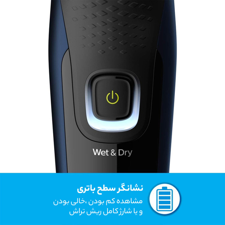 ماشین اصلاح موی صورت فیلیپس مدل S1323 از ریشتراشهایی است که از برش چرخشی برای اصلاح دقیق و سریع موی صورت استفاده میکند. این مدل دارای یک خطزن برای اصلاح خط ریش و مرتبکردن ریش و سبیل است. علاوه بر این، این دستگاه به صورت بیسیم عمل میکند و از باتری قابل شارژ استفاده میکند. برای شارژ باتری، آداپتور ارائه شده را مستقیماً به خود دستگاه وصل کنید. تیغههای چرخان ریشتراش در حین اصلاح روی صورت میچرخند و موها را از ته قطع میکنند. قسمت سری ماشین اصلاح صورت S1323/41 قابلیت شستشو تحت آب را دارد و میتوانید خرده موهای روی آن را شستشو دهید. طراحی بدنه این دستگاه ارگونومیک است و وزن سبک آن باعث میشود در حین استفاده از دستگاه خسته نشوید و تجربهی مطلوبی از اصلاح داشته باشید. با یک ساعت شارژ، میتوانید از این مدل تا 45 دقیقه استفاده کنید و از ویژگی شارژ سریع در 5 دقیقه نیز بهره ببرید. همچنین، این ماشین اصلاح با تیغههای خود تیز شونده مجهز شده است.